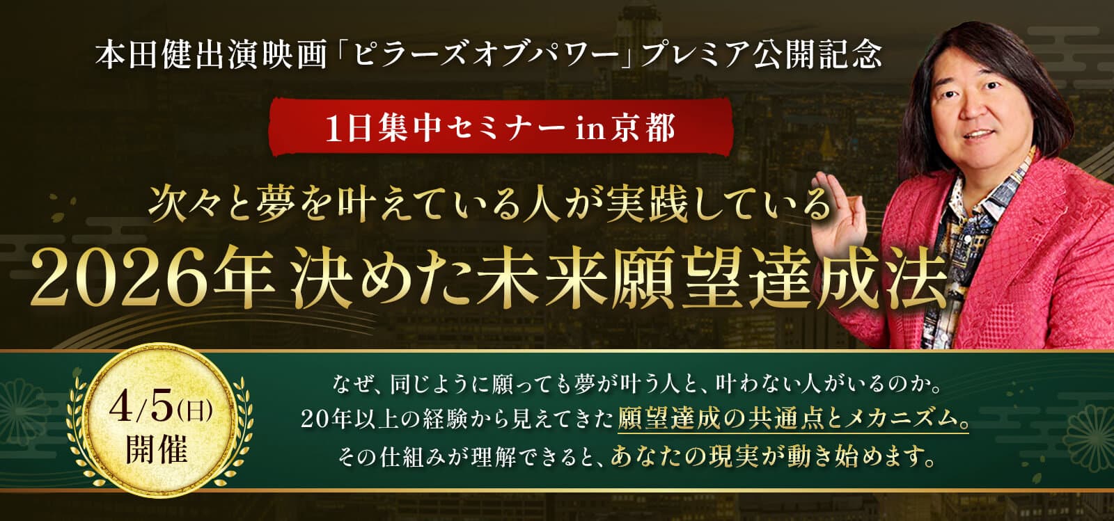 昨年に続き、4月に京都で開催する願望達成セミナーは、きっと、あなたの人生を変えると思います。