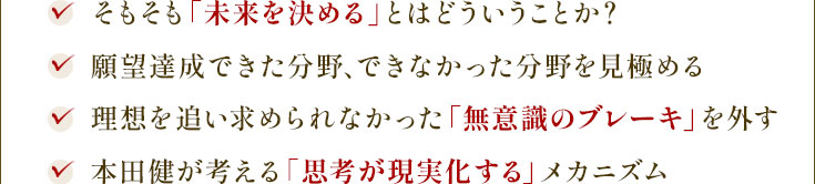 これら全てを可能にするのが、本田健の「決めた未来」願望達成法です。