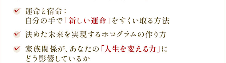 これまで、仕事、お金、人間関係など、いろいろ思い通りにいかなかった人も、このセミナーが転換点になると思います。