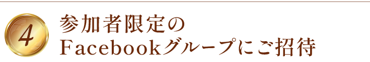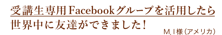 オンラインメンタープログラム2026参加者限定のFacebookグループにご招待します。自分らしく生きたい!という同じ志を持つみなさん同士、お互いに応援し、応援される関係になることで、幸せで豊かな人生への変化を感じていただけると思います。仲間とのちょっとしたやり取りから、人生を進めるヒントや気づきが得られるかもしれません。