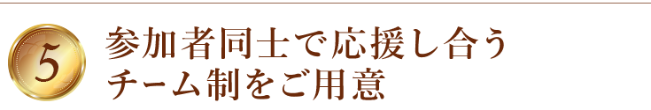 メンバーがお互いに切磋琢磨することで、より結果を出しやすい状態になるためのシステムとして、少人数制の「チーム制」をご用意しています。このチームがきっかけで結婚したり、新たなビジネスが生まれたり、これまでたくさんの方の人生を変えてきた仕組みに、ぜひ参加ください。なお、チーム制への参加は任意となります。