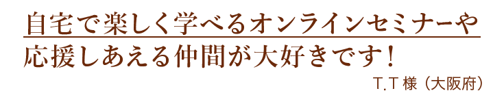 もっと自分のペースで働きたいと思っていますが、今は1歳と3歳の子育て中で、オンラインなら学べるかもと思い、参加しました。時間が限られている中でも空き時間に学べたのがよかったです。子育て中だと孤独を感じることも多いですが、健さんの話でくすっと笑ったり、Q&Aでハッとすることも多く、受講生同士のグループワークも楽しかったです。