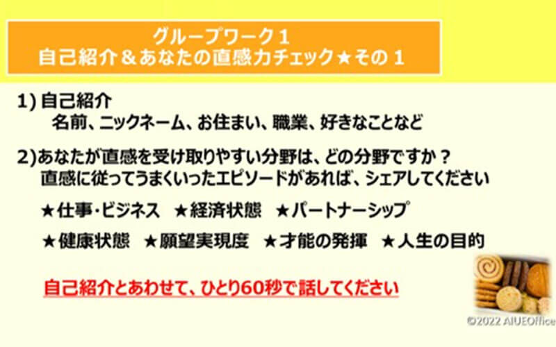 オンラインメンタープログラムに参加されるみなさんが、お互いに交流しながら、学びを深めていけるよう、アイウエオフィス主催のZoom交流会を不定期で開催します。Zoomのブレイクアウトルームで、自分らしく生きたいという同じビジョンを持つ仲間とのグループワークをしていただけます。この無料交流会には、本田健は参加しない予定です。
