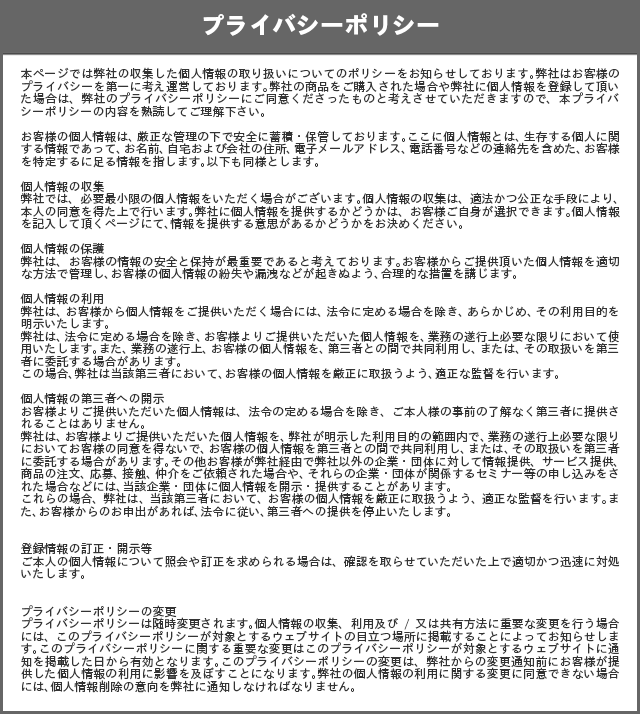 この方針の内容は、当ウェブサイト掲載日より適用いたします。また、この方針は、法令等の要請その他当社が必要と認めた場合に予告なく改定する場合があります。